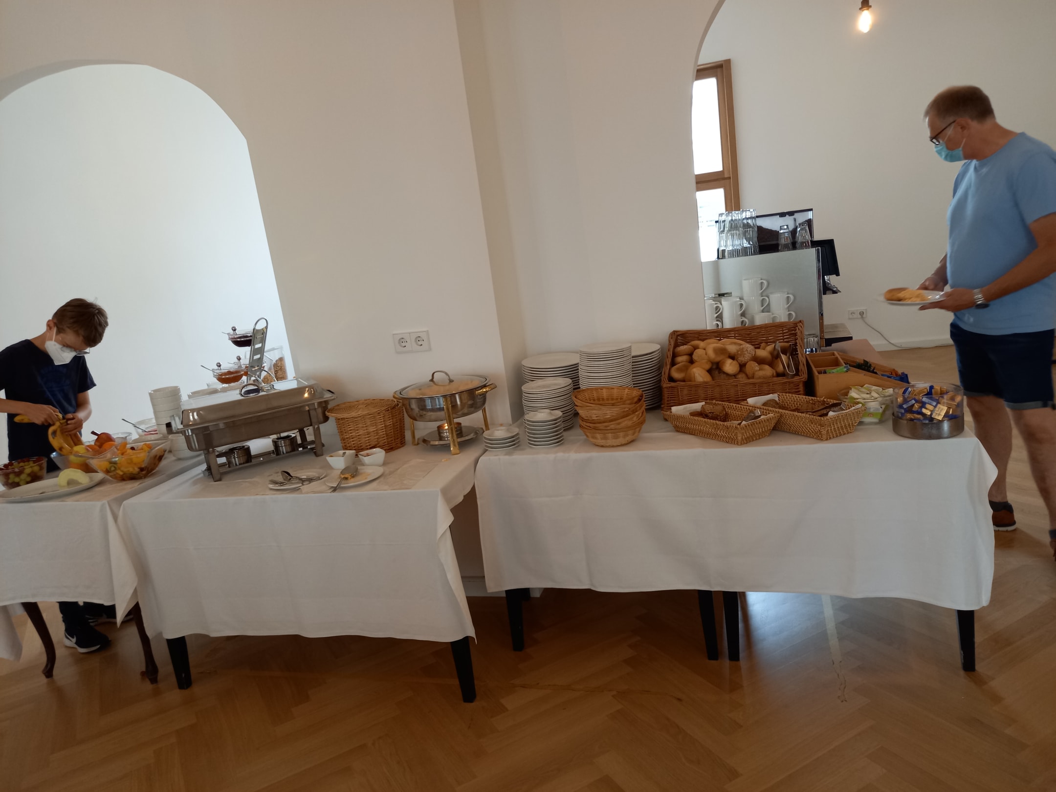 GastroFrühstücksraum : Atmosphäre und wohlfühlen ist anders . Und Tische für Buffet eventl vom Sperrmüll beschafft?!?