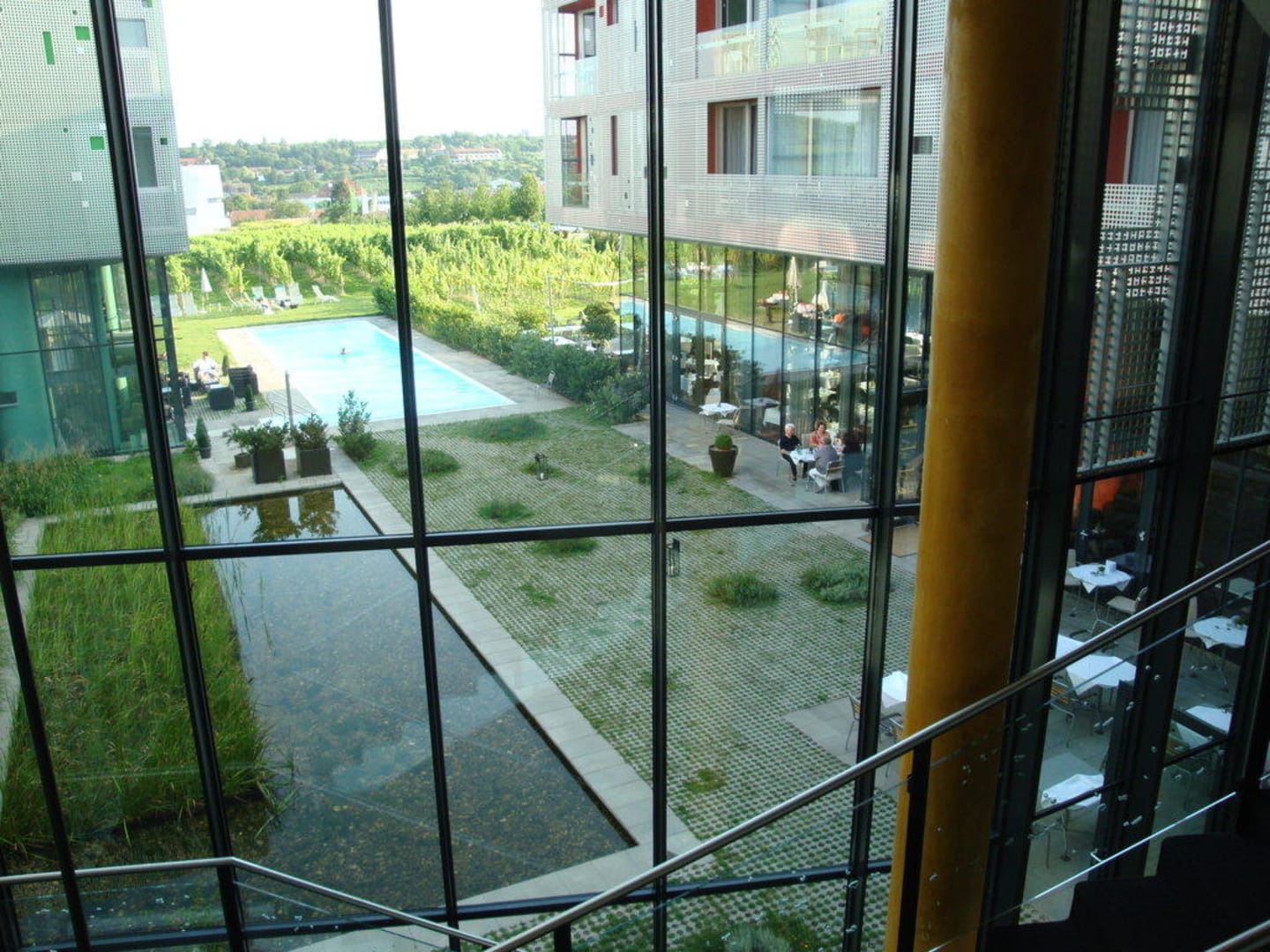 Blick von Lobbystiege in den Innenhof