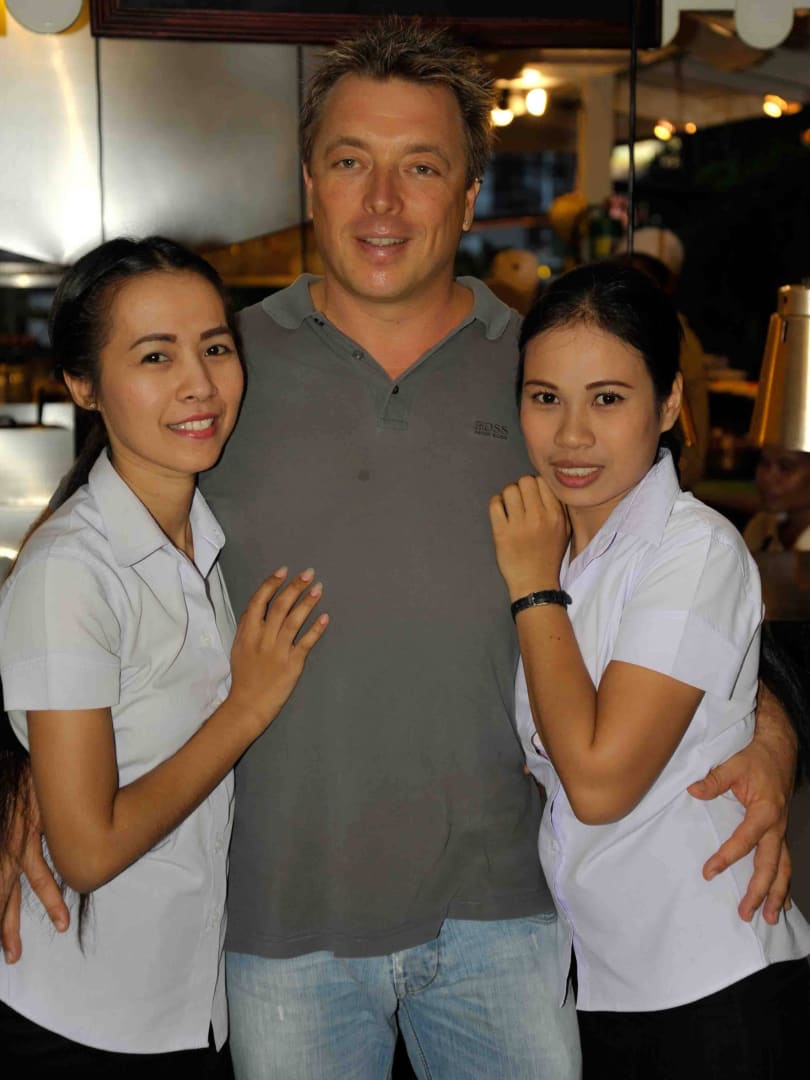 Robert der Hotelmanager und Mitarbeiterinnen