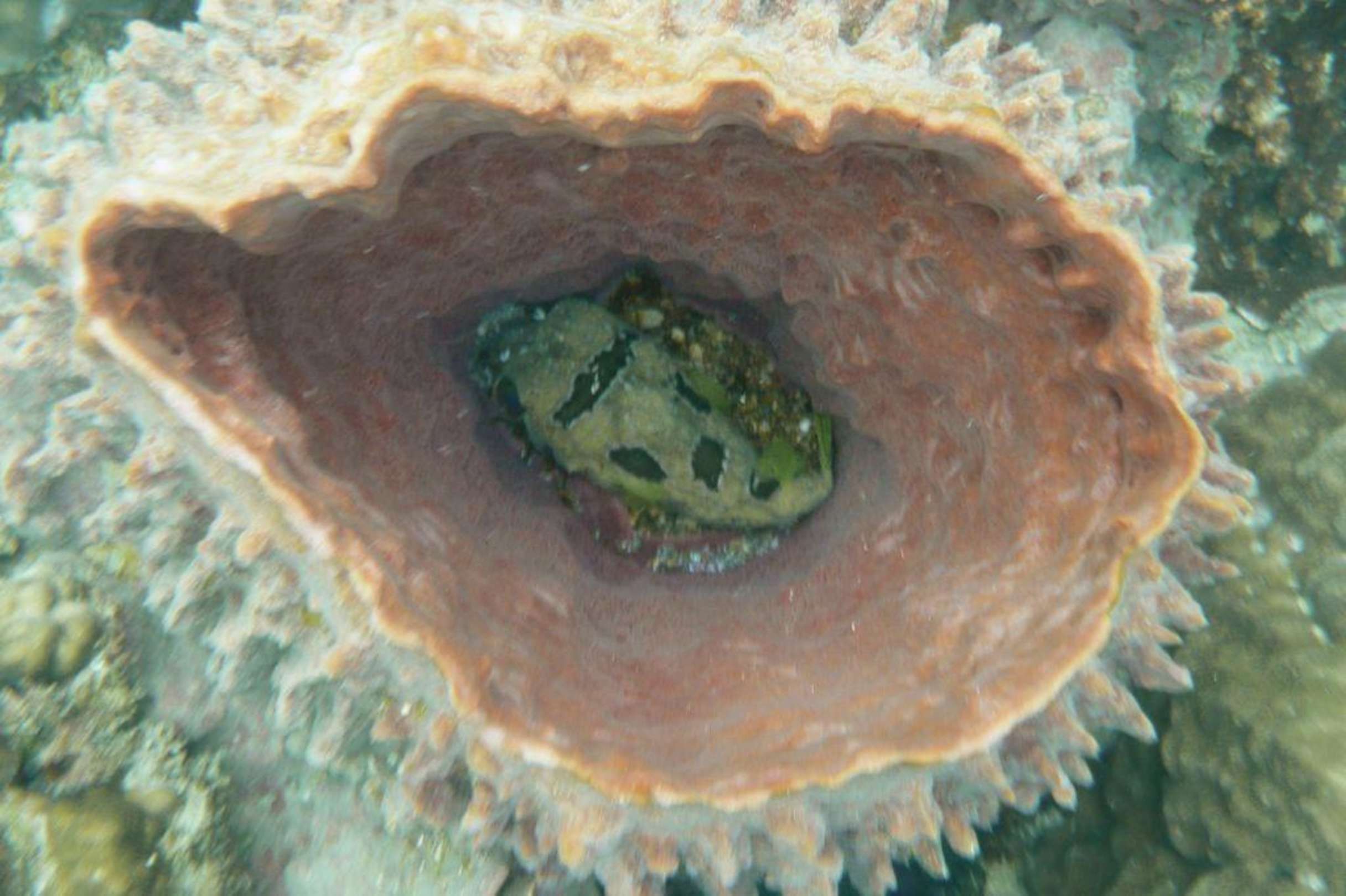 Ein Masken-Igelfisch...... in einer Amphore. Riff am Haad Yao West
