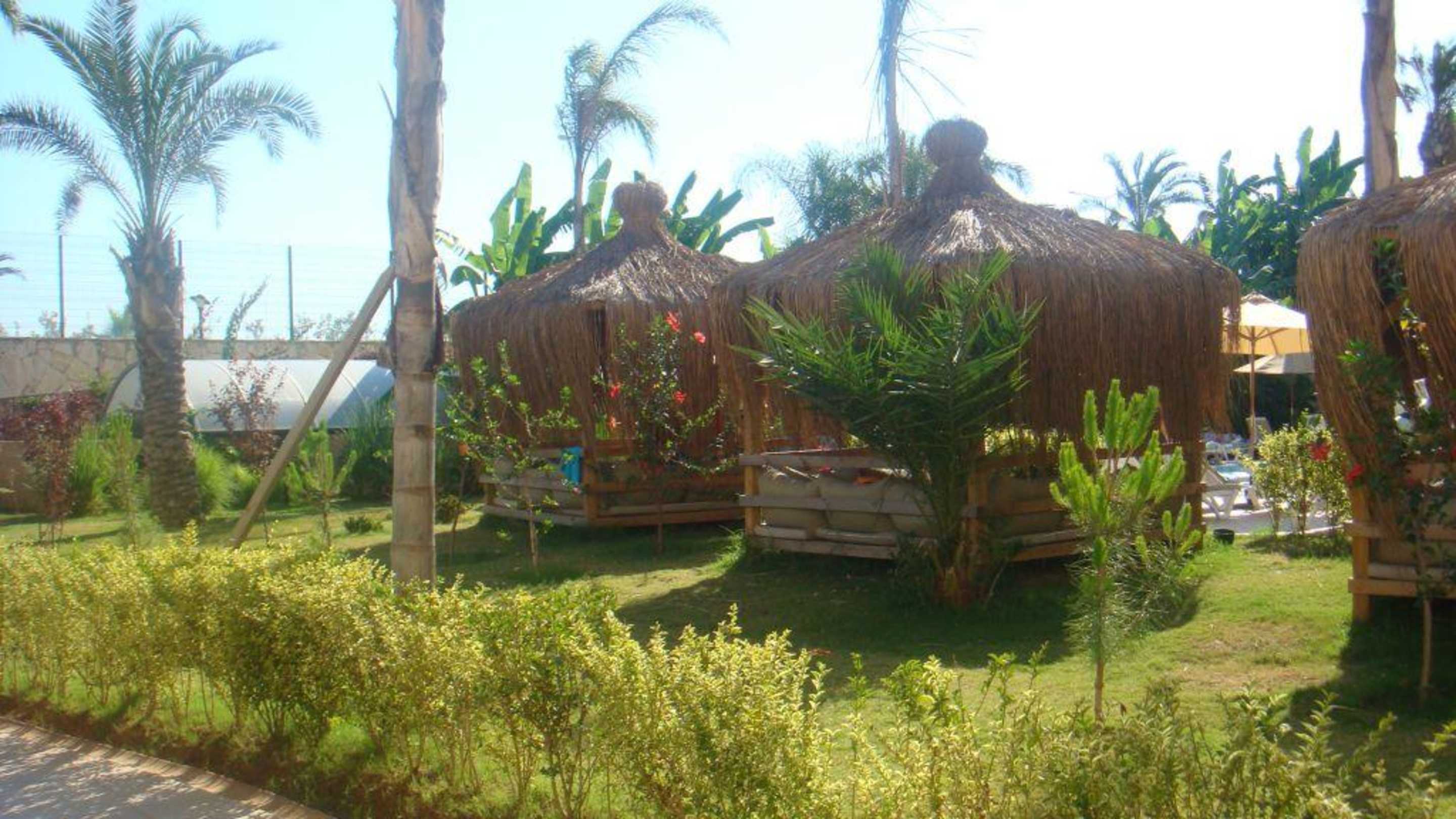 altany przy basenie z wodospadem