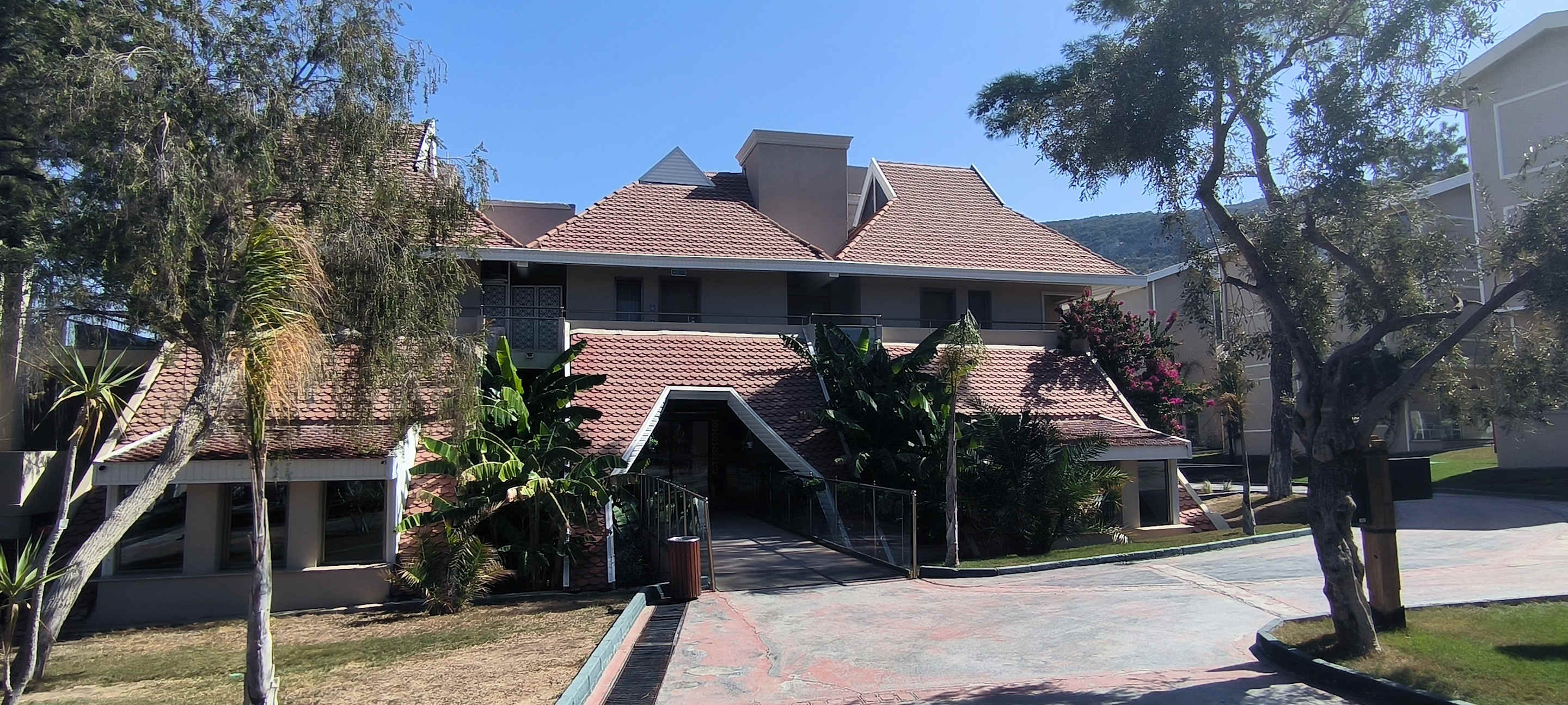 Eingang zur Rezeption von der Anlage aus