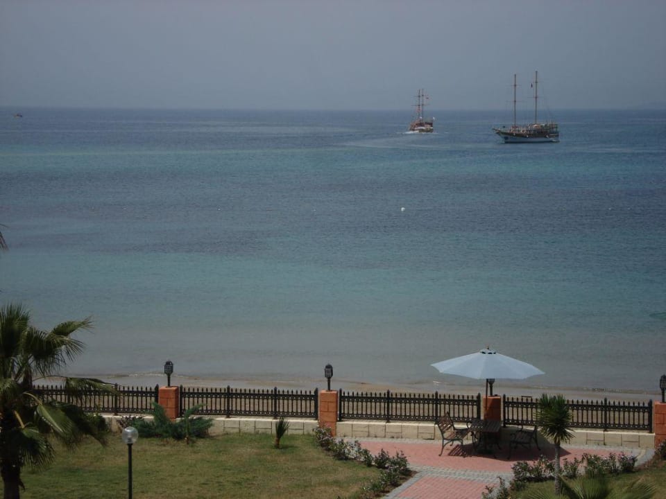 Blick vom Zimmer 2004 auf das Meer mit Hotelstrand