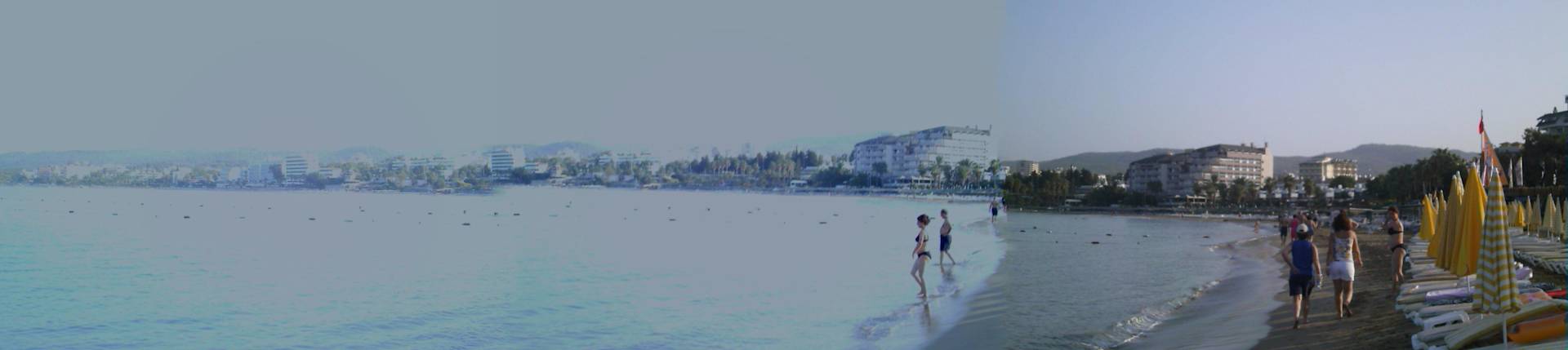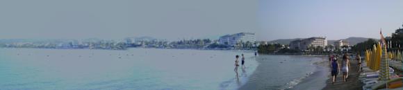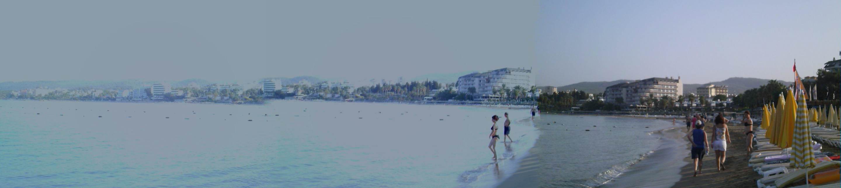 Hotel-StrandVom Lonicerastrand mit Ausblick über Avsallar und die Bucht. Sollte Panorama sein, hat leider nicht ganz mit der Überlappung geklappt