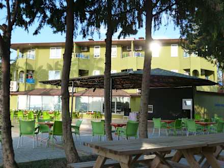 Block E mit Freilichtbühne und Restaurant