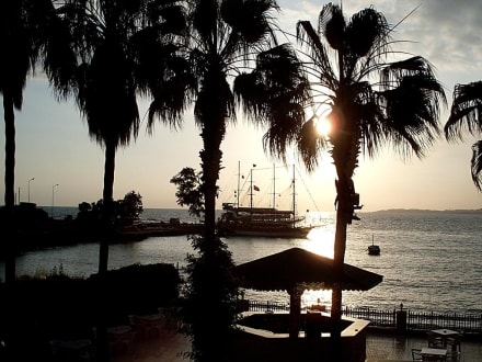 Sonnenuntergang mit Blick auf die Außenanlagen