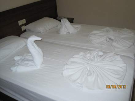 Tolle Deko auf dem Bett! Die Putzfrauen geben sich sehr viel Mühe damit- großes Lob.