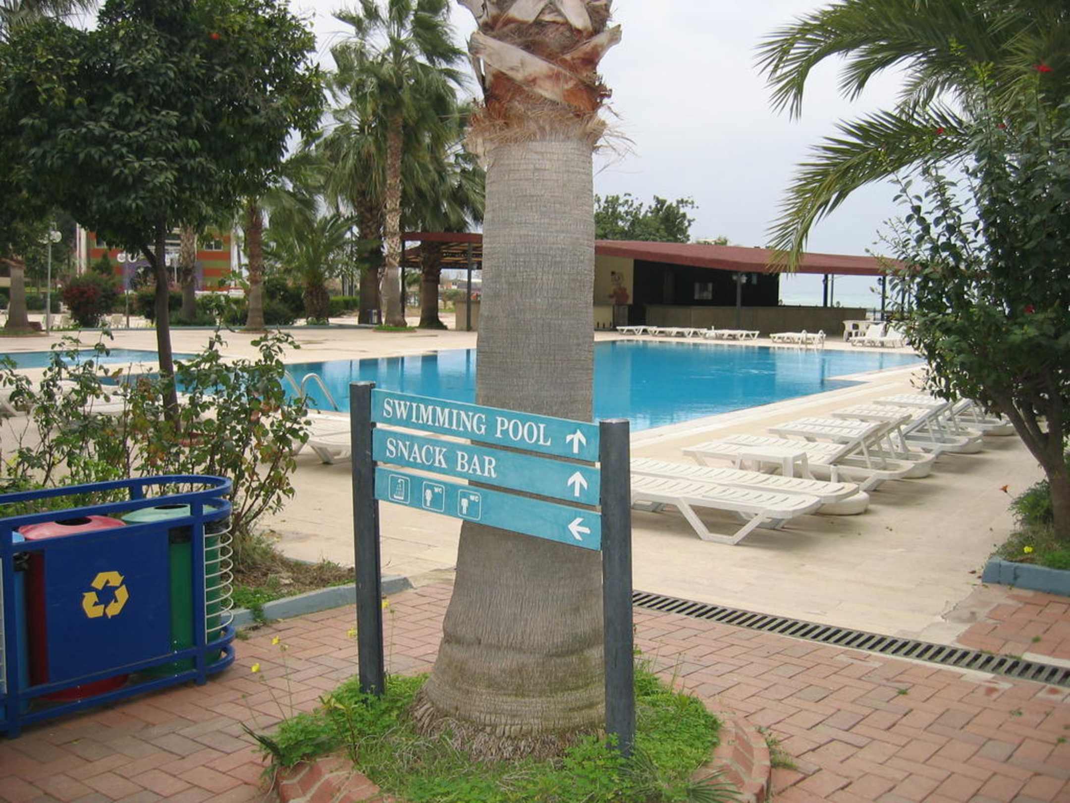 Der Pool vom Bloch B ausgesehen, im Hintergrund die Poolbar.