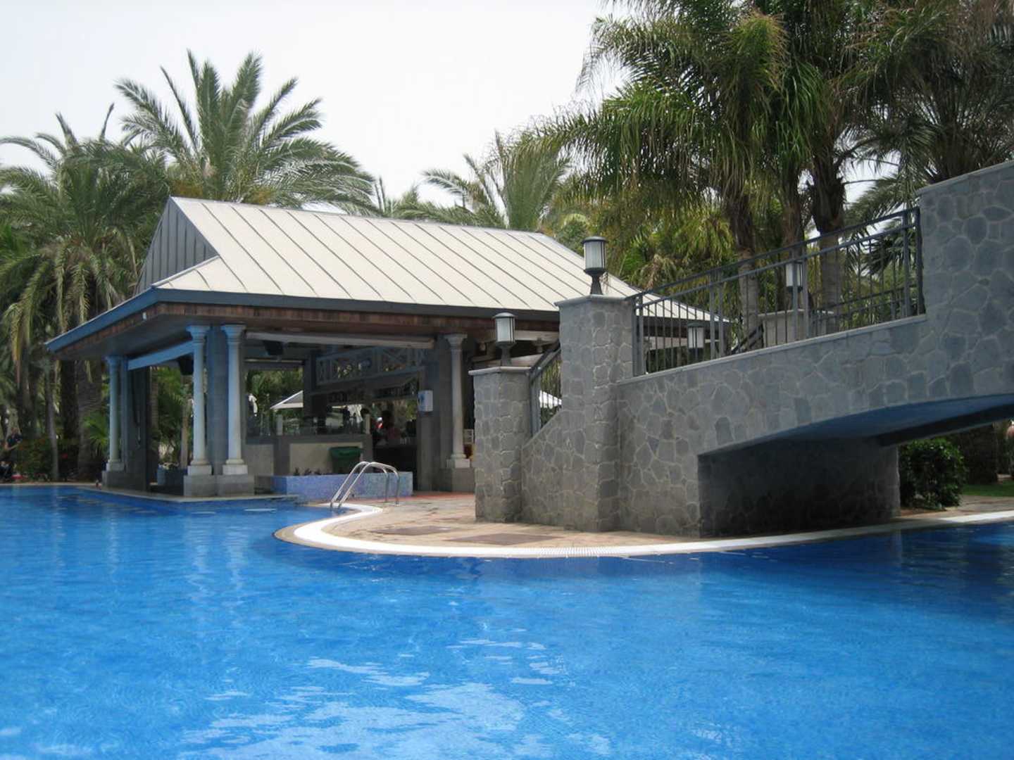 Blick auf die Poolbar (Poolhocker im Wasser!)