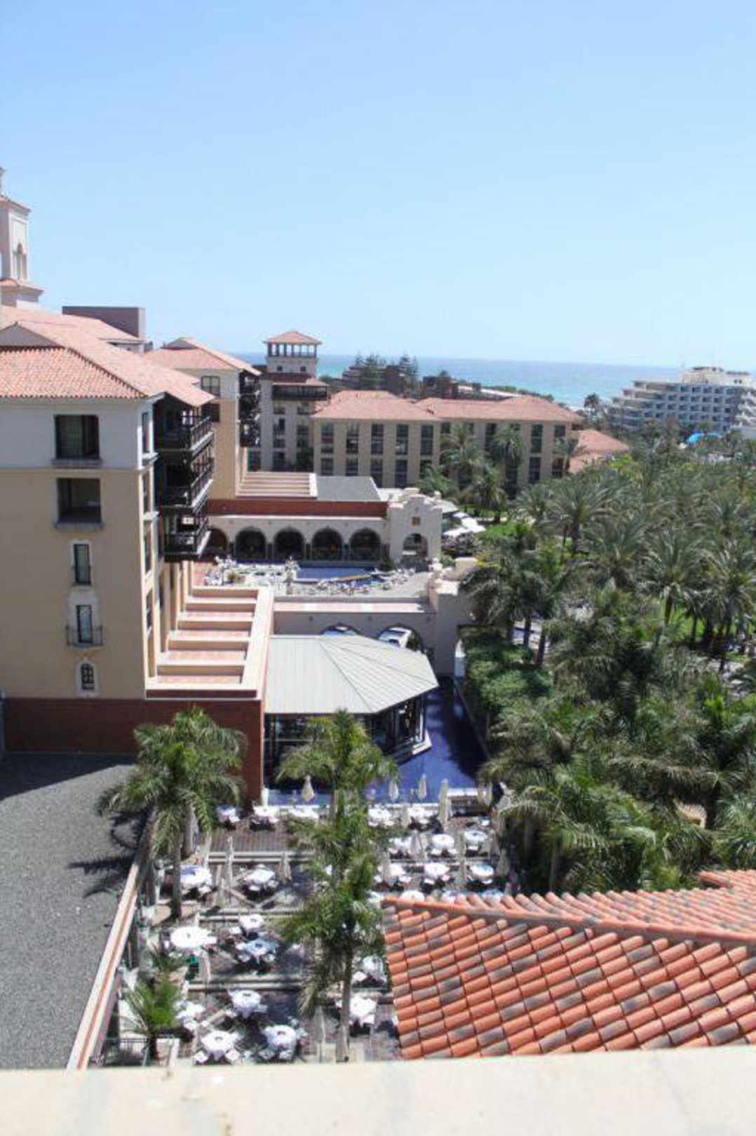 Von einem der hohen Türme aufs RestaurantWenn man mit dem Aufzug ganz hoch fährt und dann noch 2 Stockwerke mit der Treppe nach oben nimmt hat man einen wahnsinnigen Blick über Maspalomas... sehr zu empfehlen den Ausblick aus dem 8. Stock zu geniesen