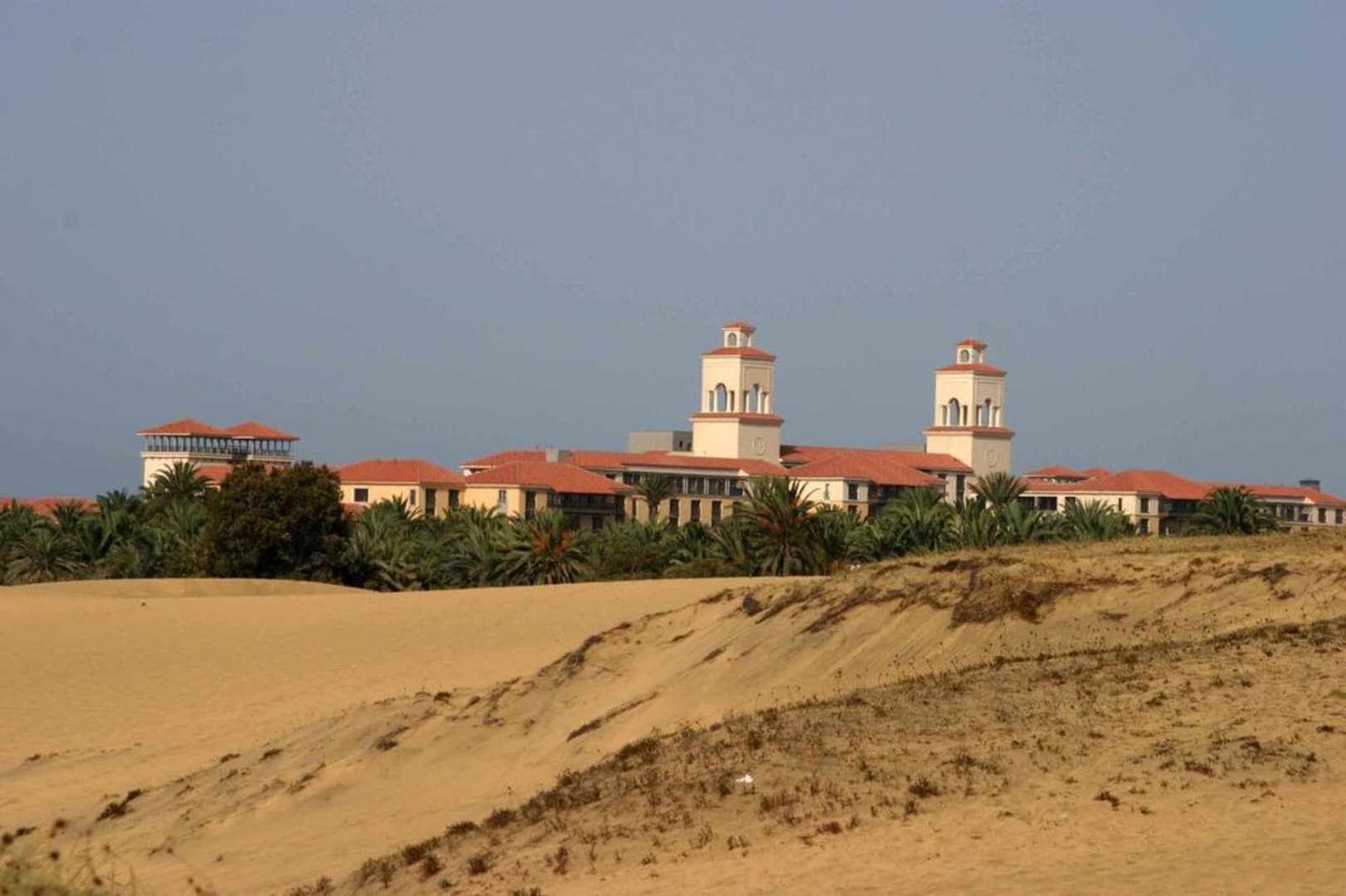Blick von den Dünen auf das Hotel