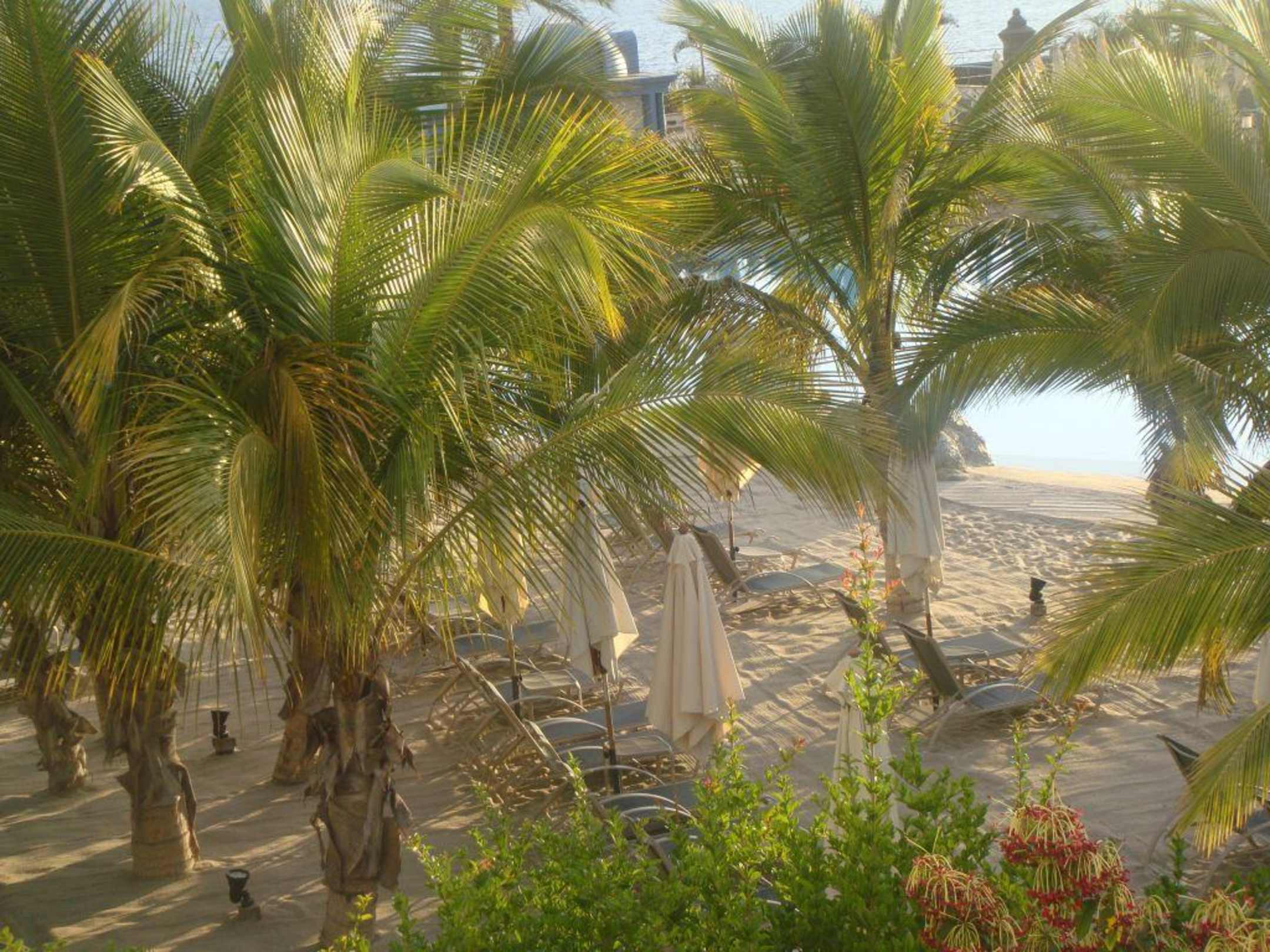 Liegen unter Palmen im Sand direkt am grossen Pool