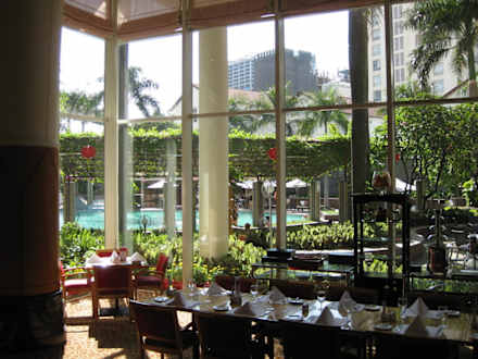Frühstücksrestaurant mit Blick auf den Pool