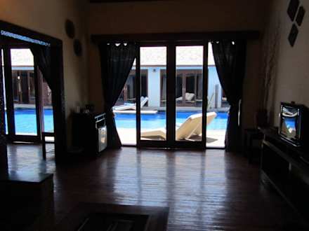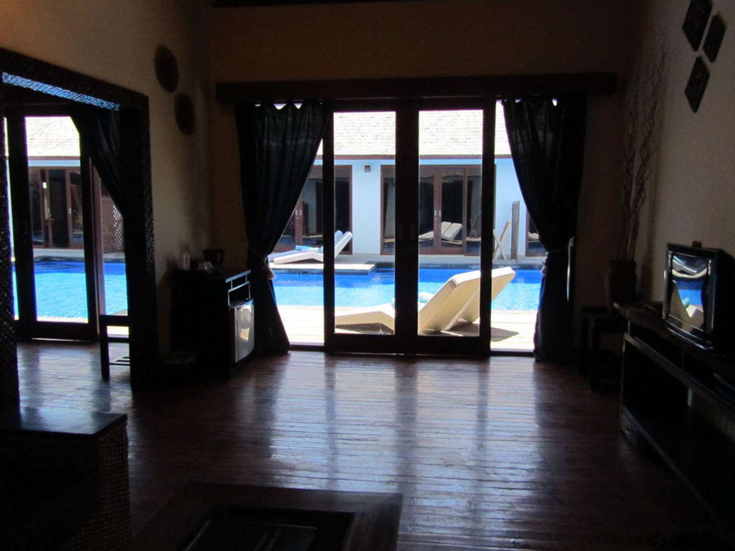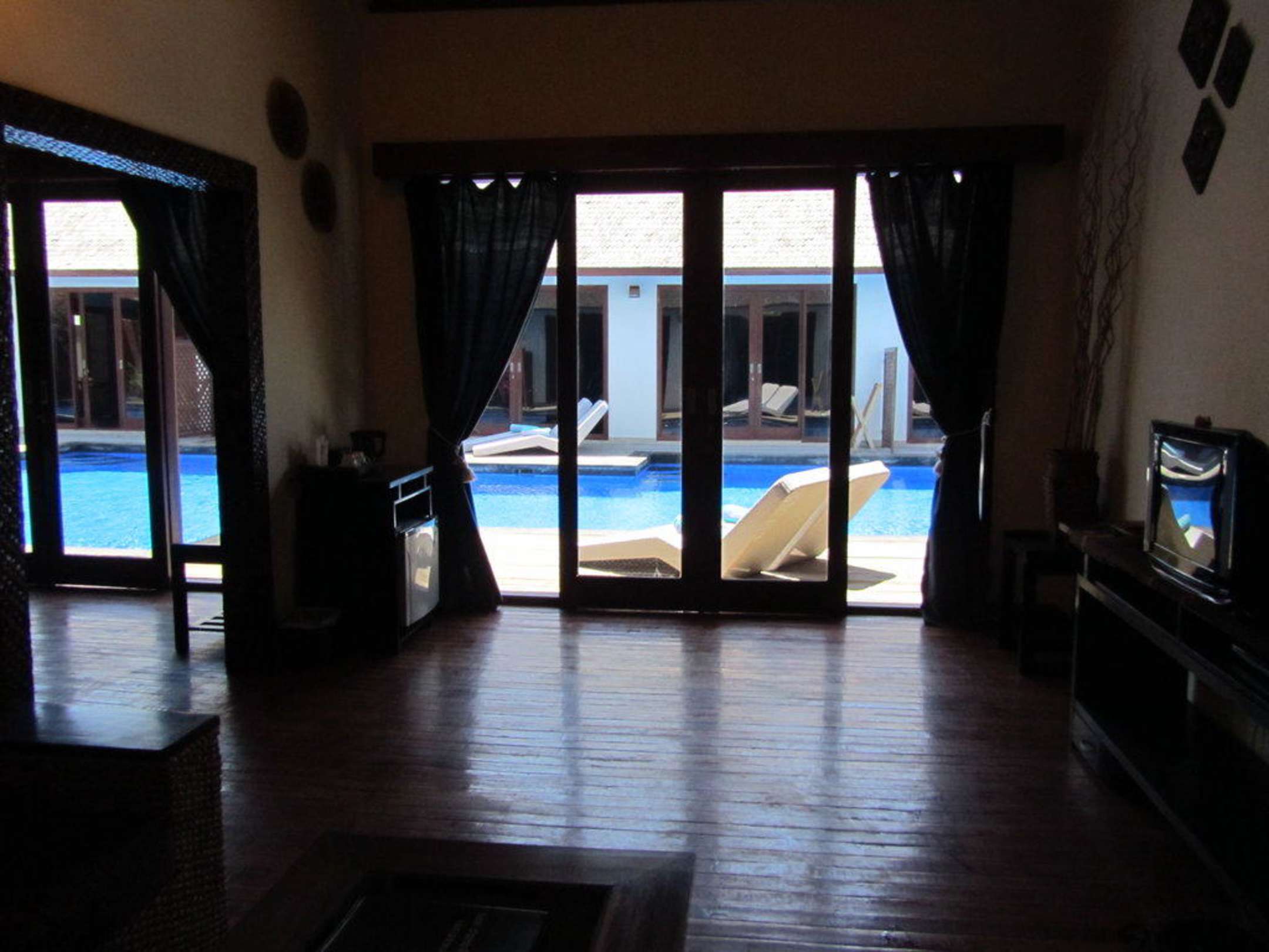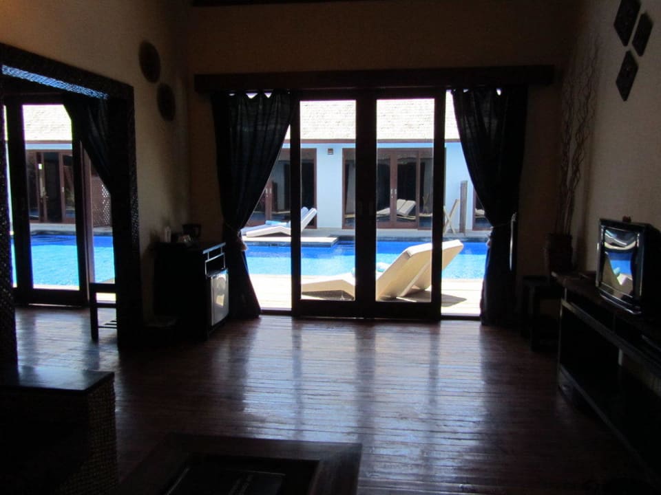 Soggiorno camera con vista piscina