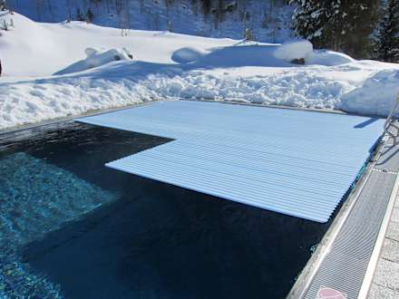 Aussenpool wird gerade abgedeckt.