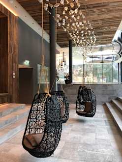 Gemütliche Schwebesessel beim Indoor Pool