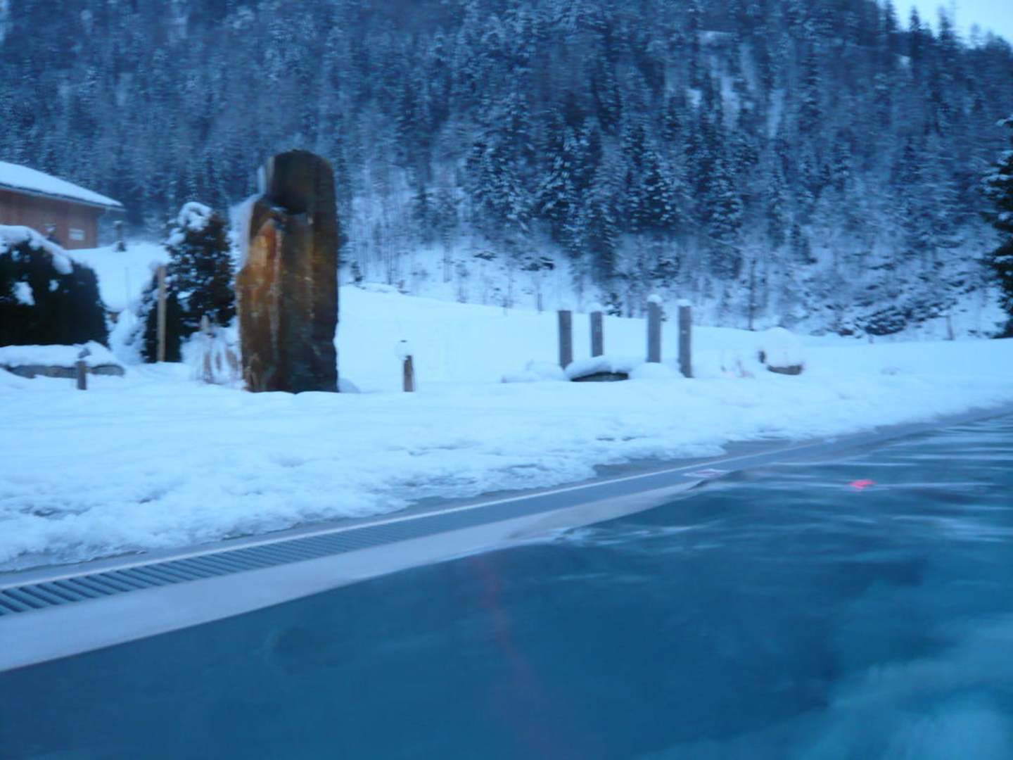 Außenpool im Winter mit Blick auf die BergeDer beheizte Außenpool.