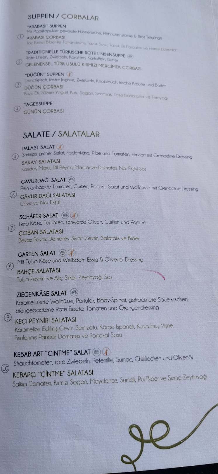 Die Speisenkarte des türkischen Restaurant Asma