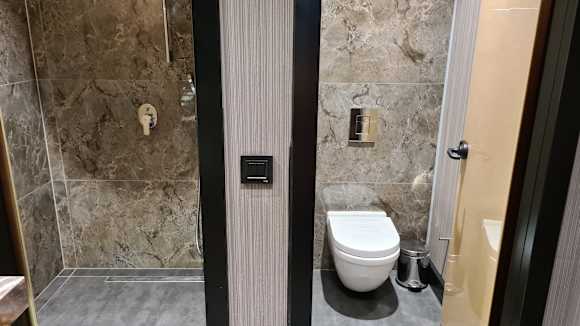 mit Türen abgetrennte Dusche und WC