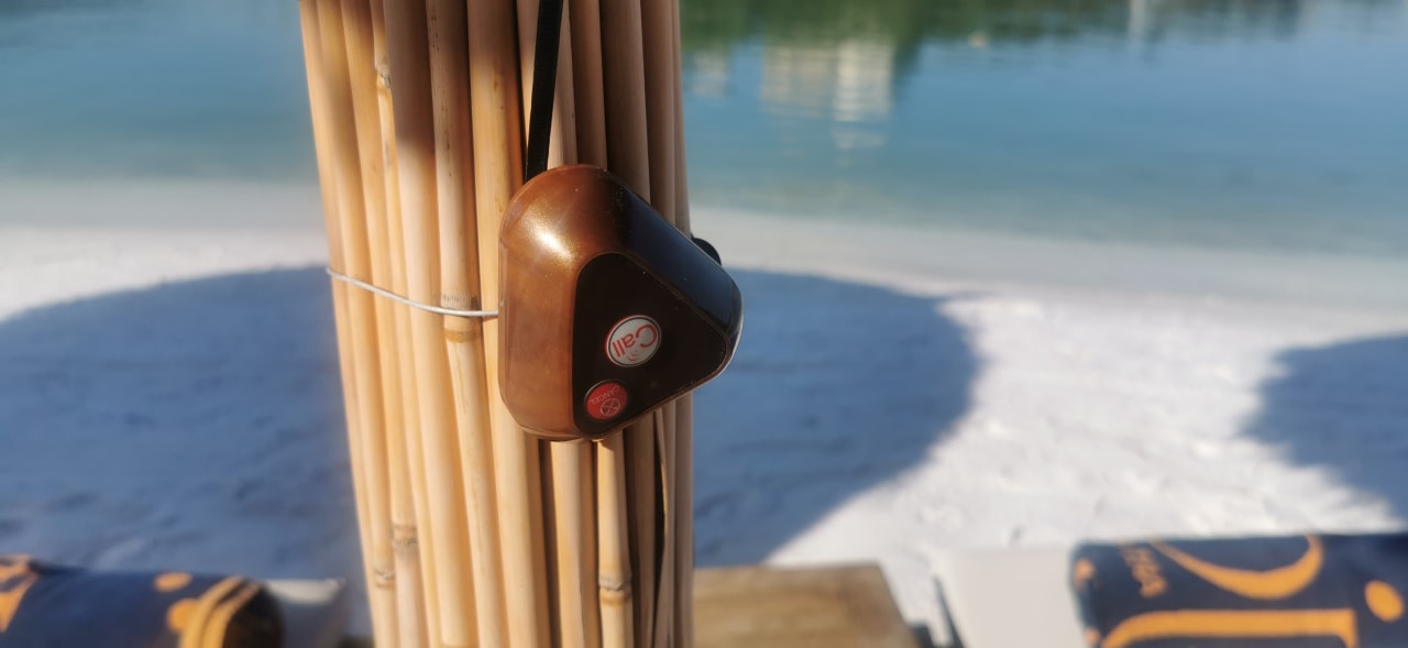 An jedem Sonnenschirm ist ein Knopf um den Kellner zu rufen