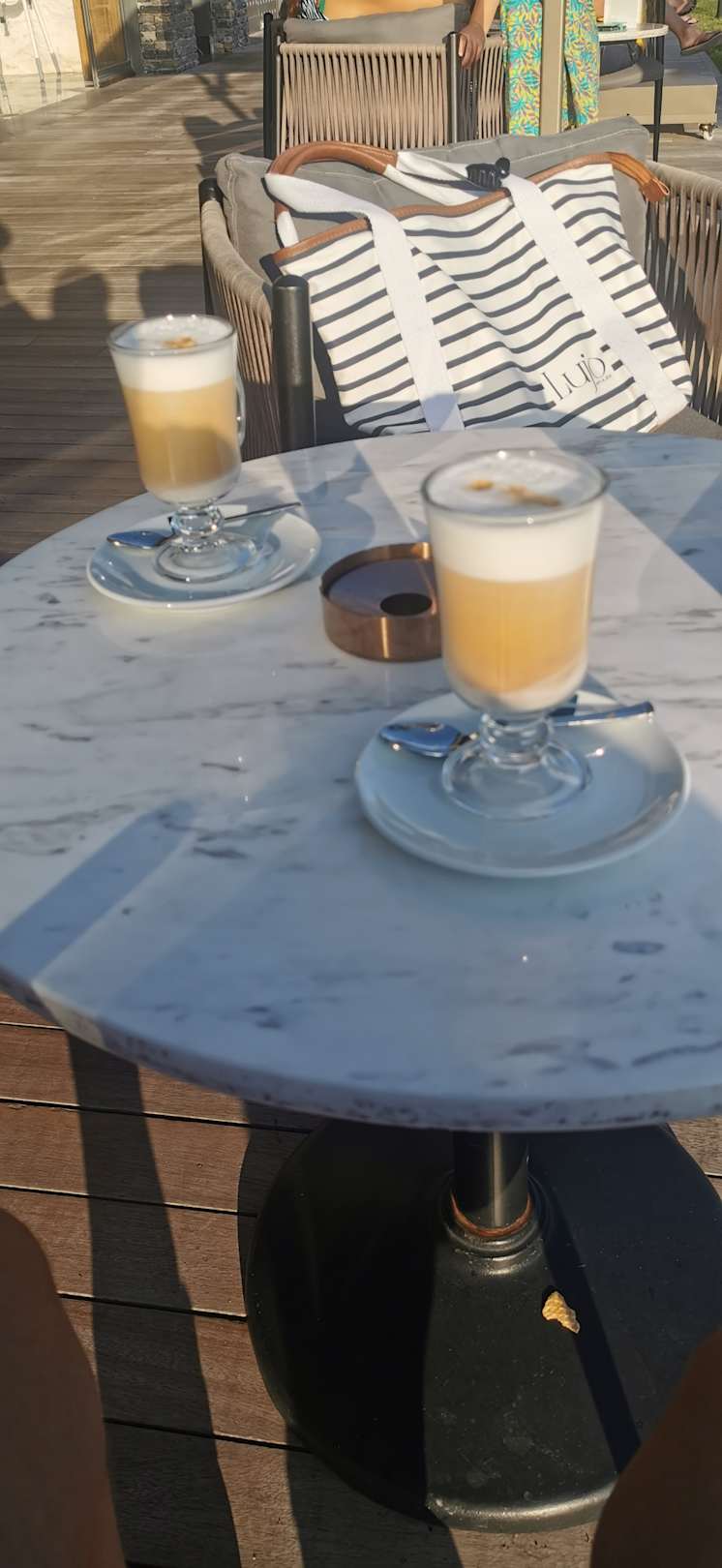 Latte im Cafe vor der Arena