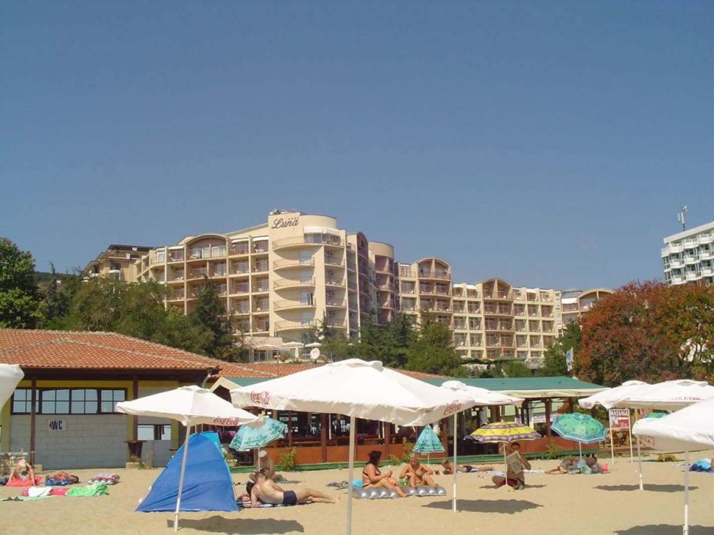 Blick vom Strand zum Hotel Luna