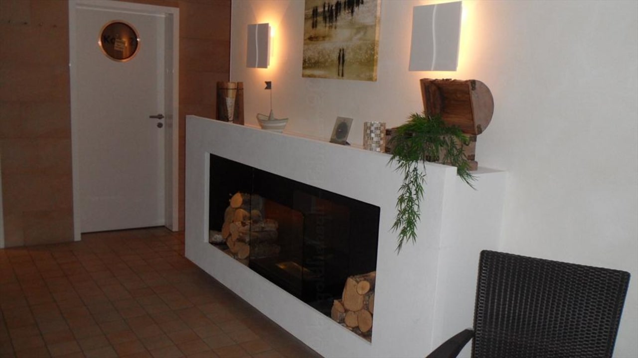 Blick auf Kamin und Tür zu einem Anwendungsraunm