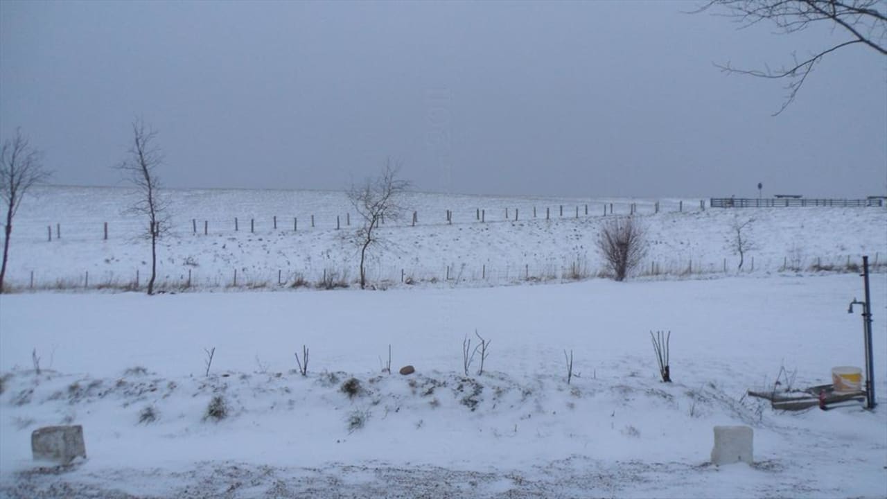 Außenansicht rückwärtiger Teil des Hotel, verschneiter Deichblick