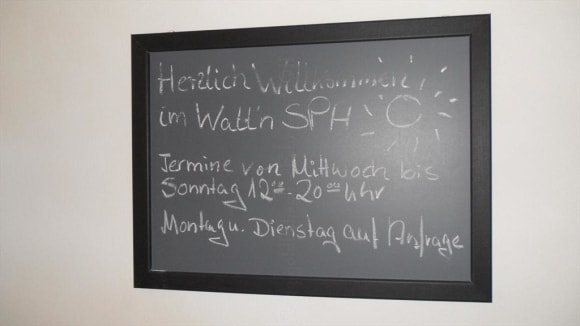 Hinweistafel im Eingangsbereich des "Watt´n Spa"