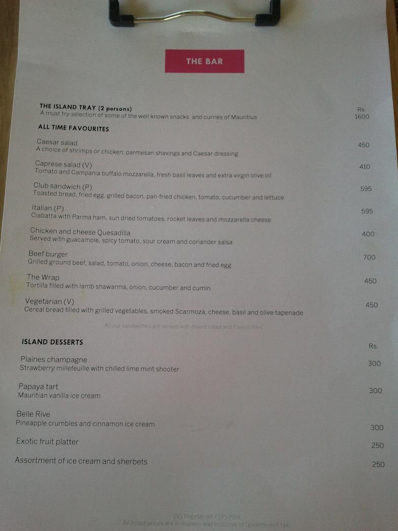 Speisekarte LUX Belle Mare
