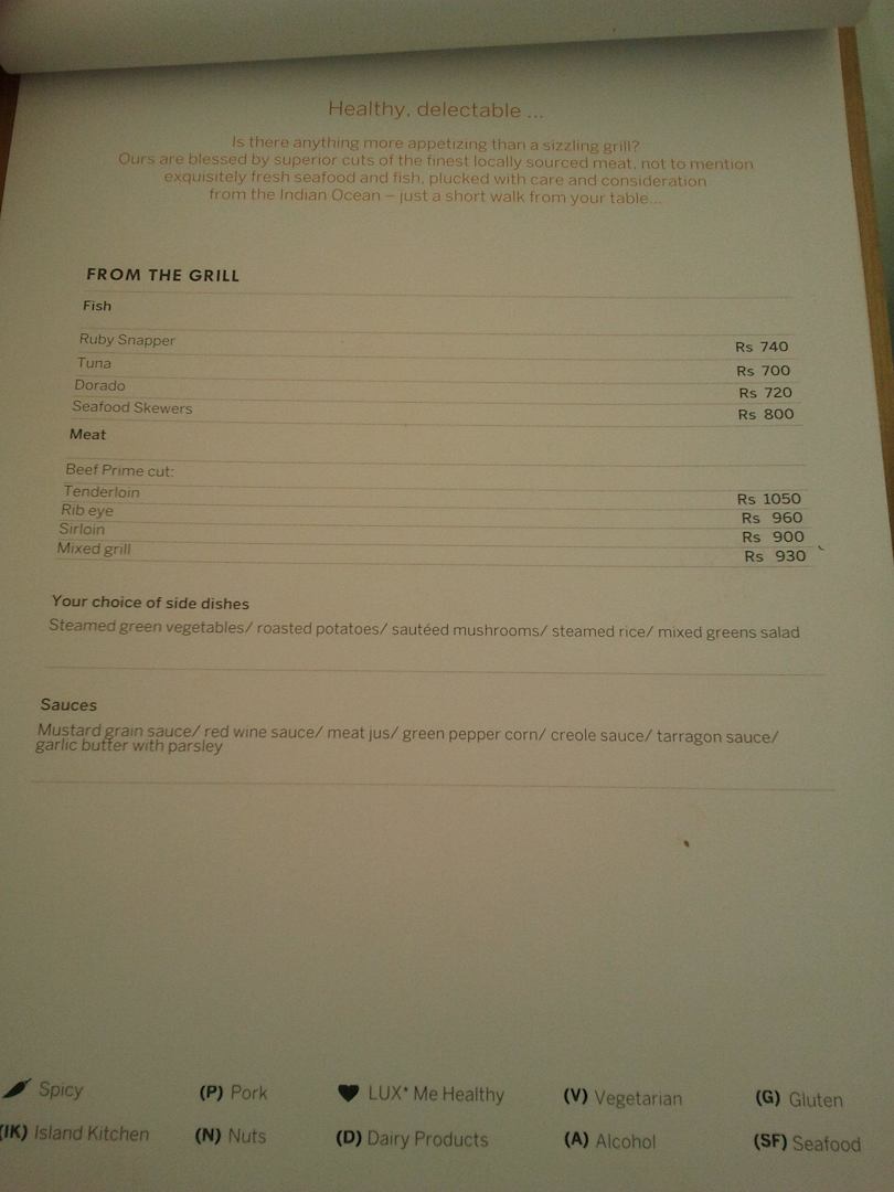 Speisekarte LUX Belle Mare