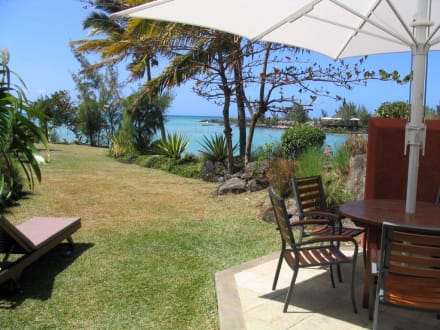 unser Blick aus der Villa, 2 Liegen sowie eine separate Sitzecke - Meerblick -