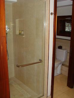 Blick ins Badezimmer - separete Dusche und WC