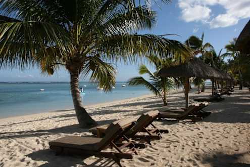 Traumhafter Sandstrand mit Holzliegen