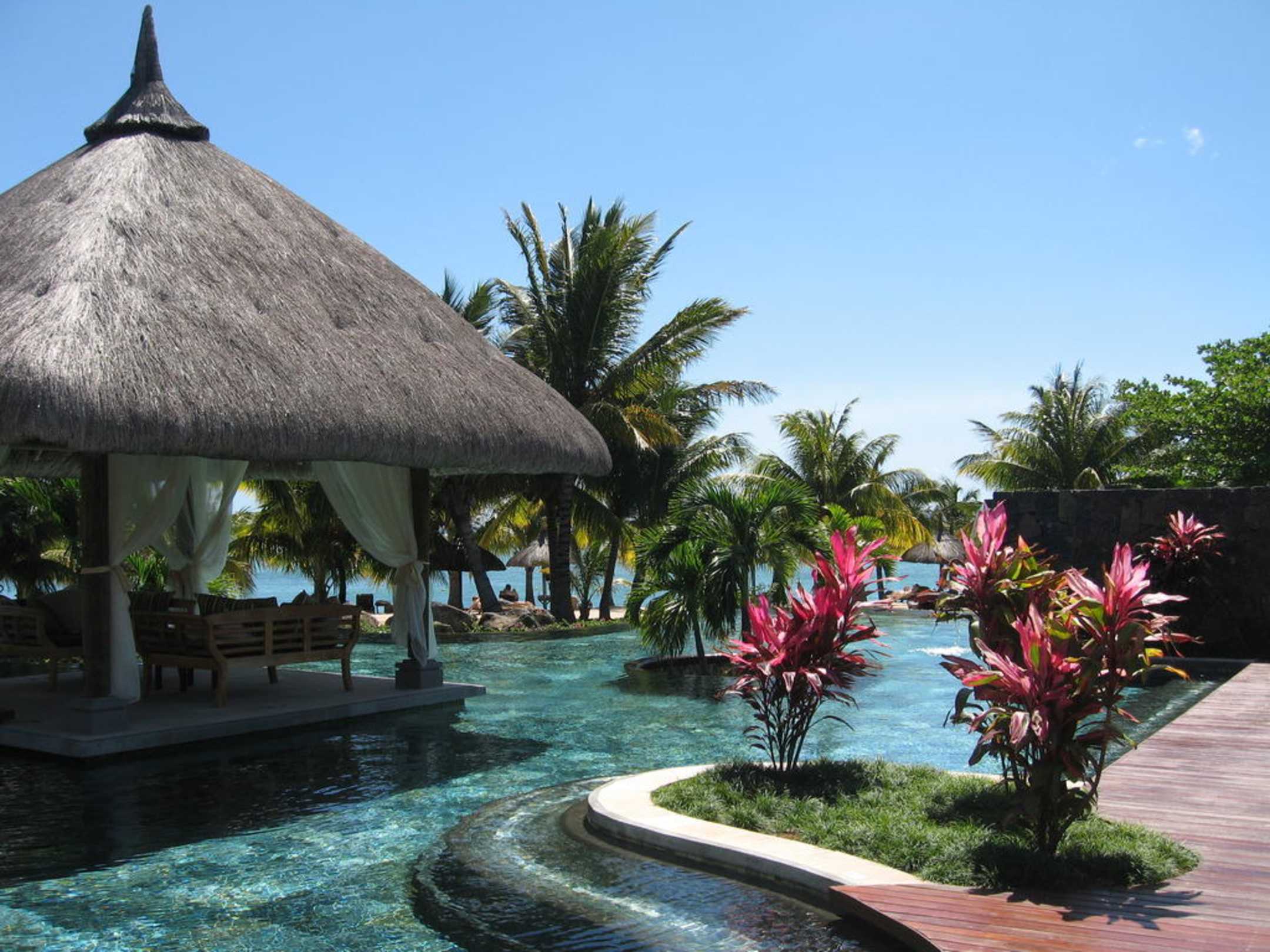 Rechter Pool mit Hochzeitspavillion