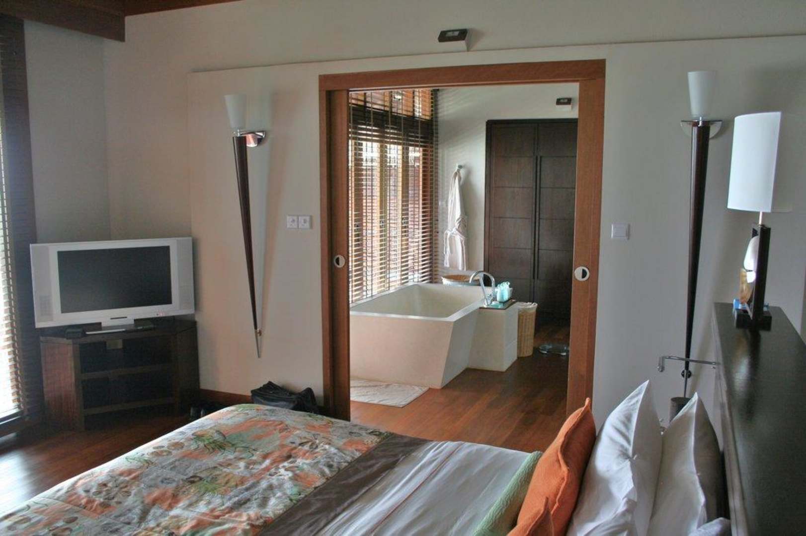 Wonzimmer mit Blick in das Bad-WasservillaAus der Badewanne hat man einen direkten und herrlichen Blick auf den Ozean