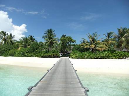 Steg zu den Wasservillen sowie zu Restaurants