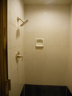 ZimmerDusche (leider der Duschkopf etwas niedrig und die Ablage auch schon für eine Seife zu klein)