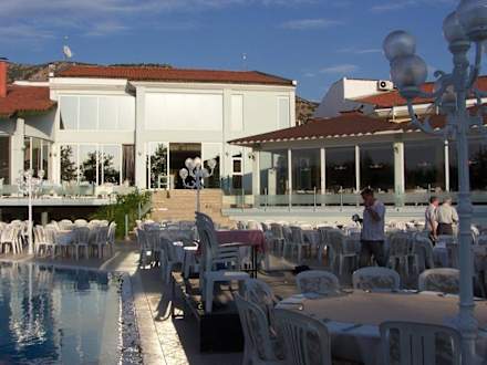 Hier wurde abends das Abendbuffet bei Livemusik angeboten
