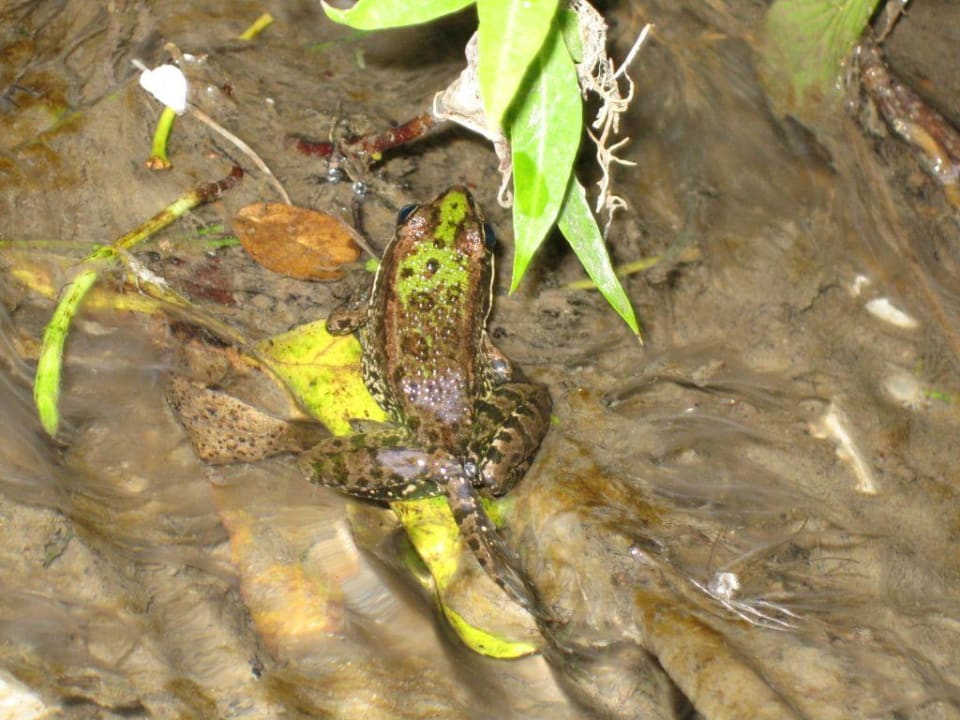 solche kleinen Frösche sind im ganzen Bachlauf auf dem Weg zum Strand zu sehen