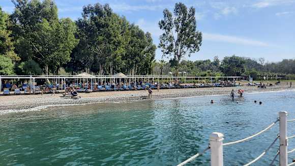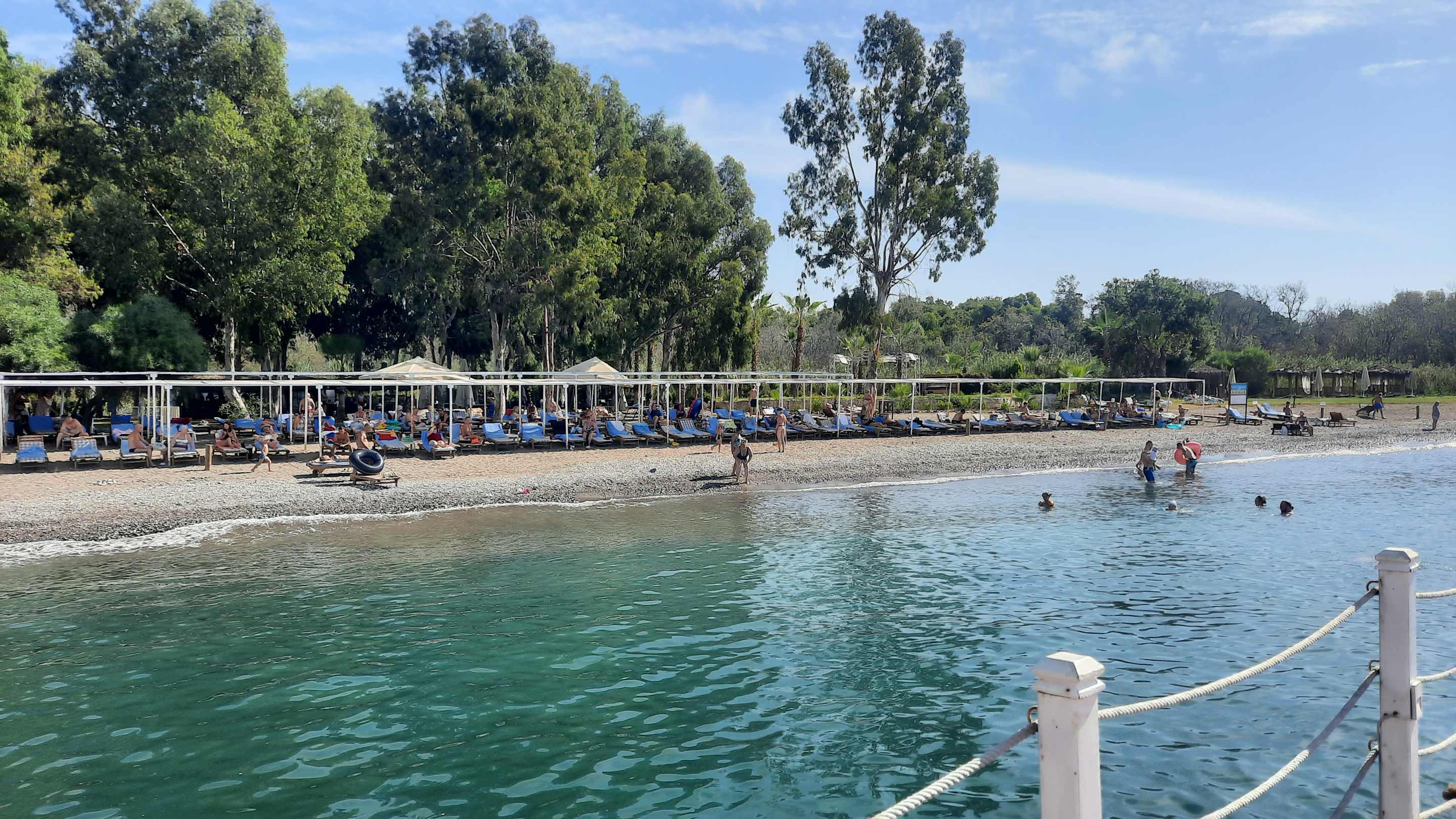 Kieselstrand, Wasser trübe, Liegen veraltet und Auflagen schmutzig