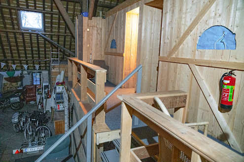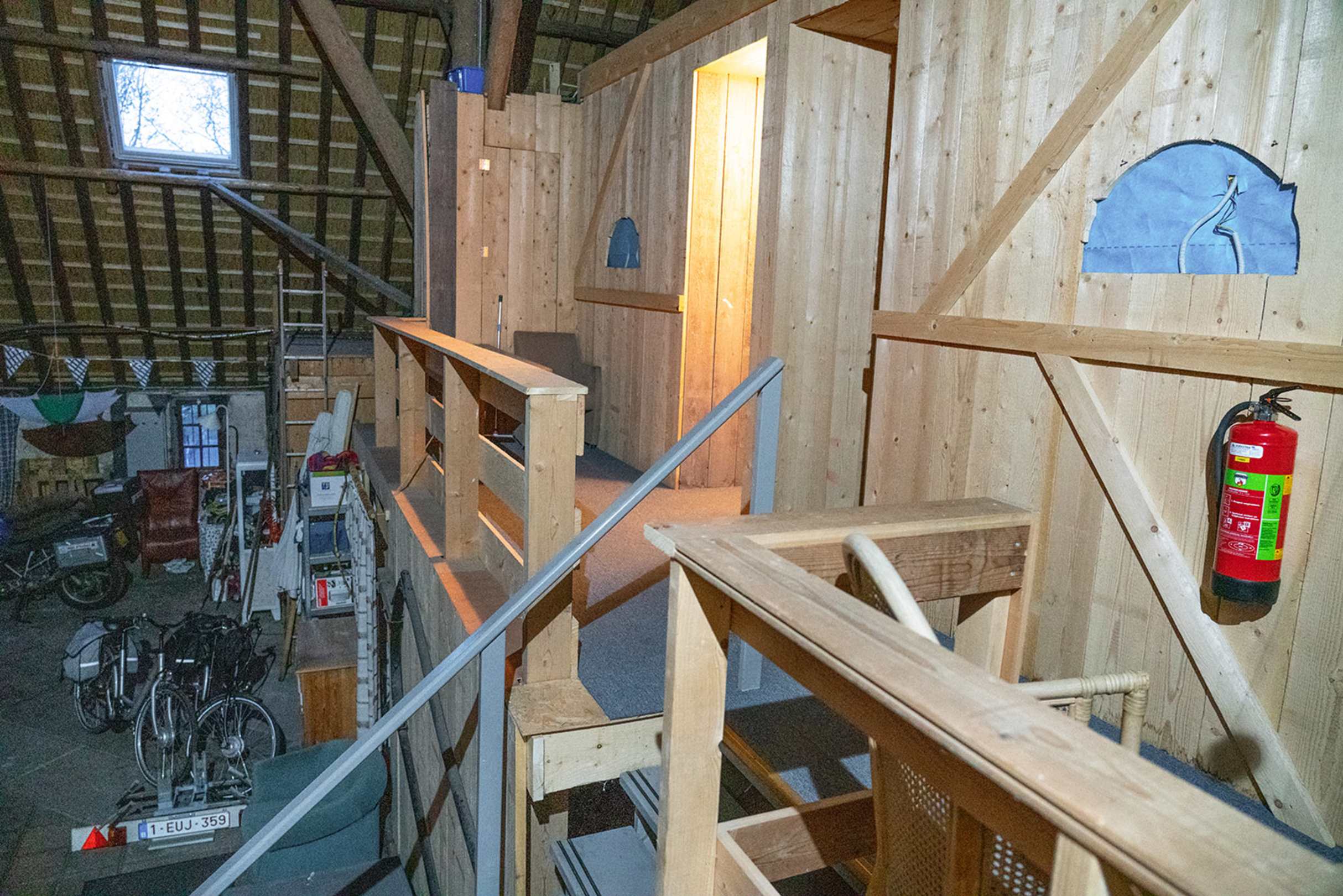 Der Zugang zu den Zimmern mit freiliegender Elektroleitung rechts im blauen feld.