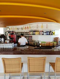 die gut gefüllte Poolbar