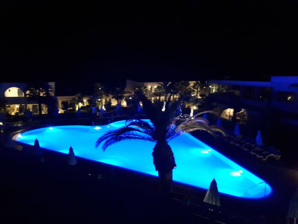 Ausblick vom Zimmer bei Dunkelheit über den Herzpool