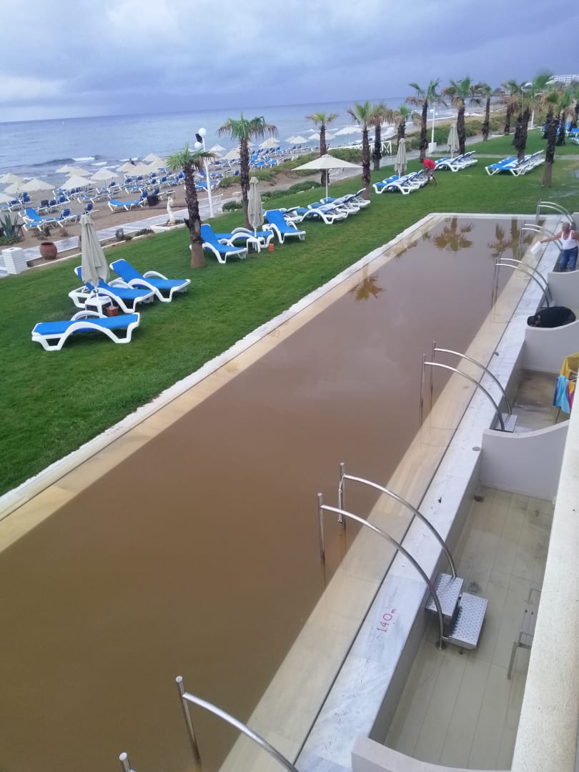 Pool nach einstündigen Regen. Putzen musste die Gäste
