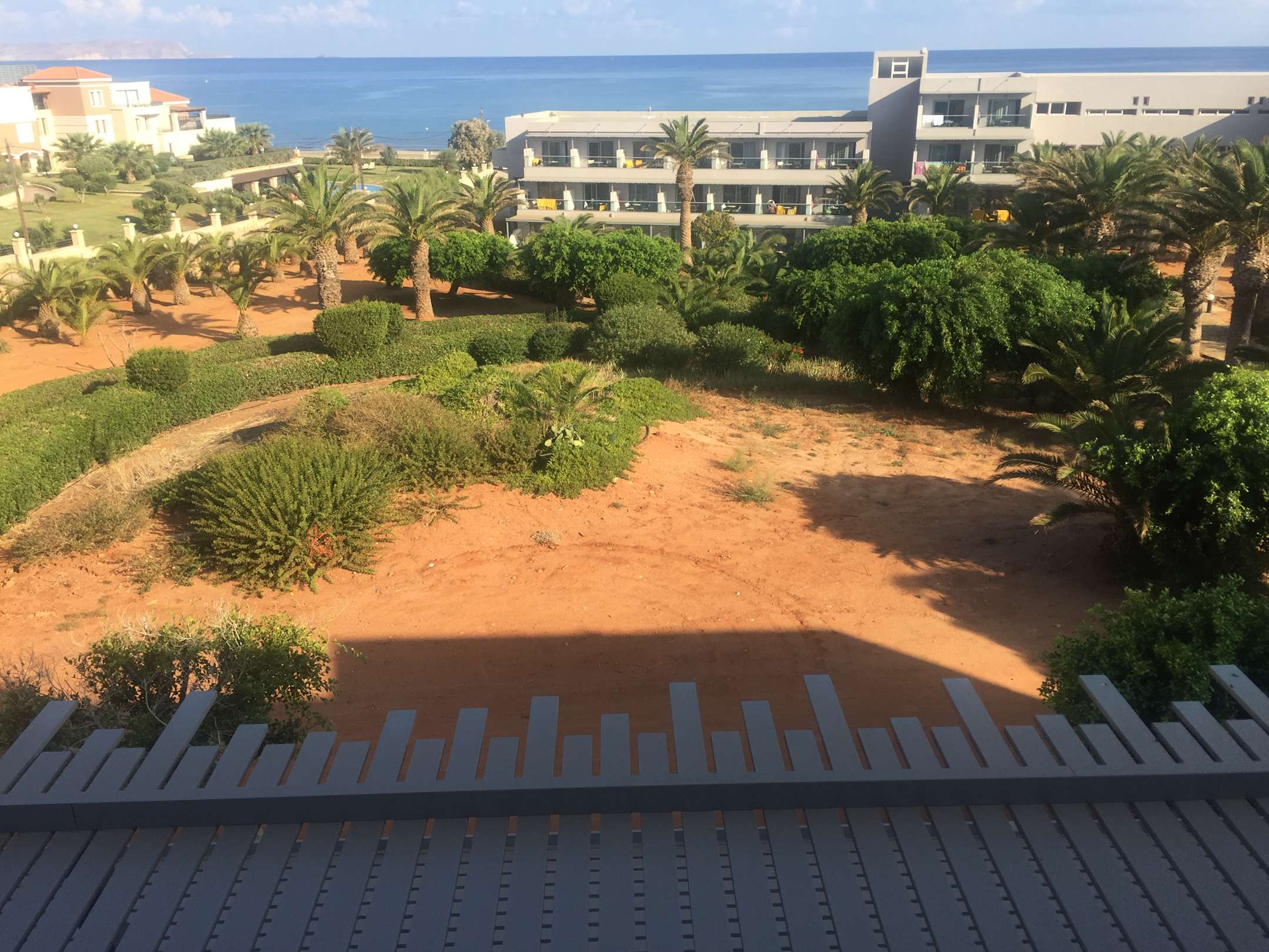 Blick vom Zimmerbalkon 2Stock von unten hätte man vom Meer wohl nichts gesehen