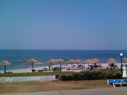 Blick vom Pool zum Strand