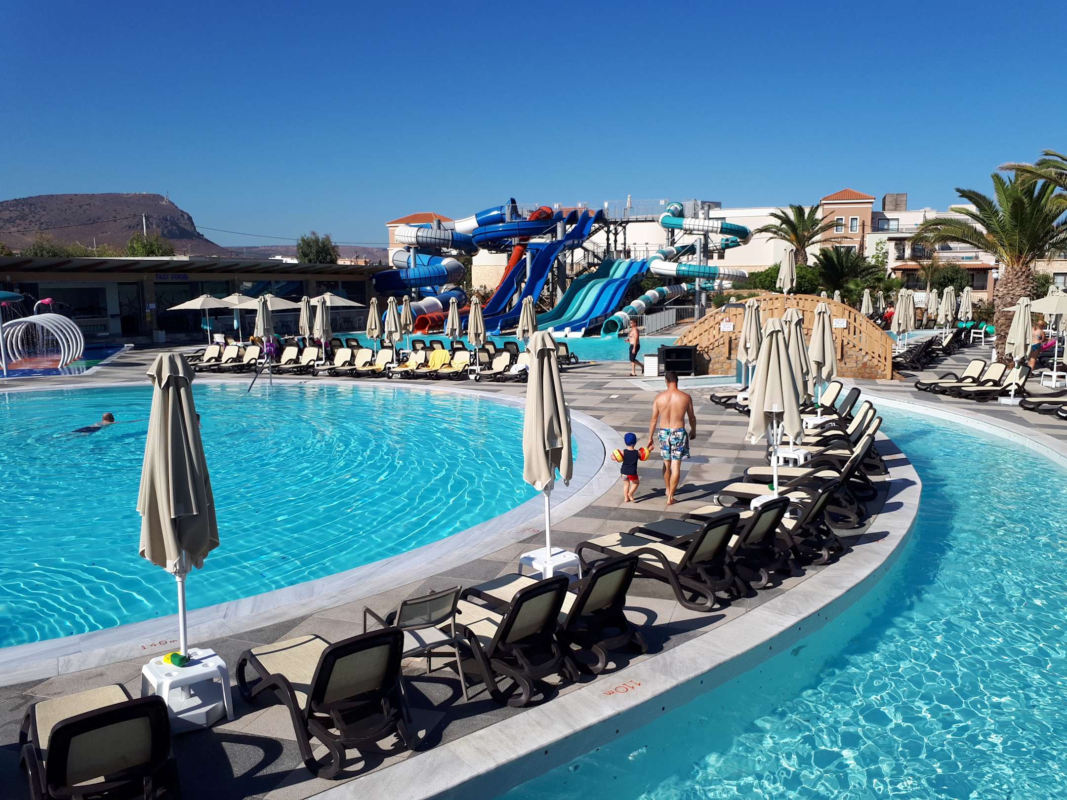 Neuer Wasserpark, morgens um 10, alle Liegen leer
