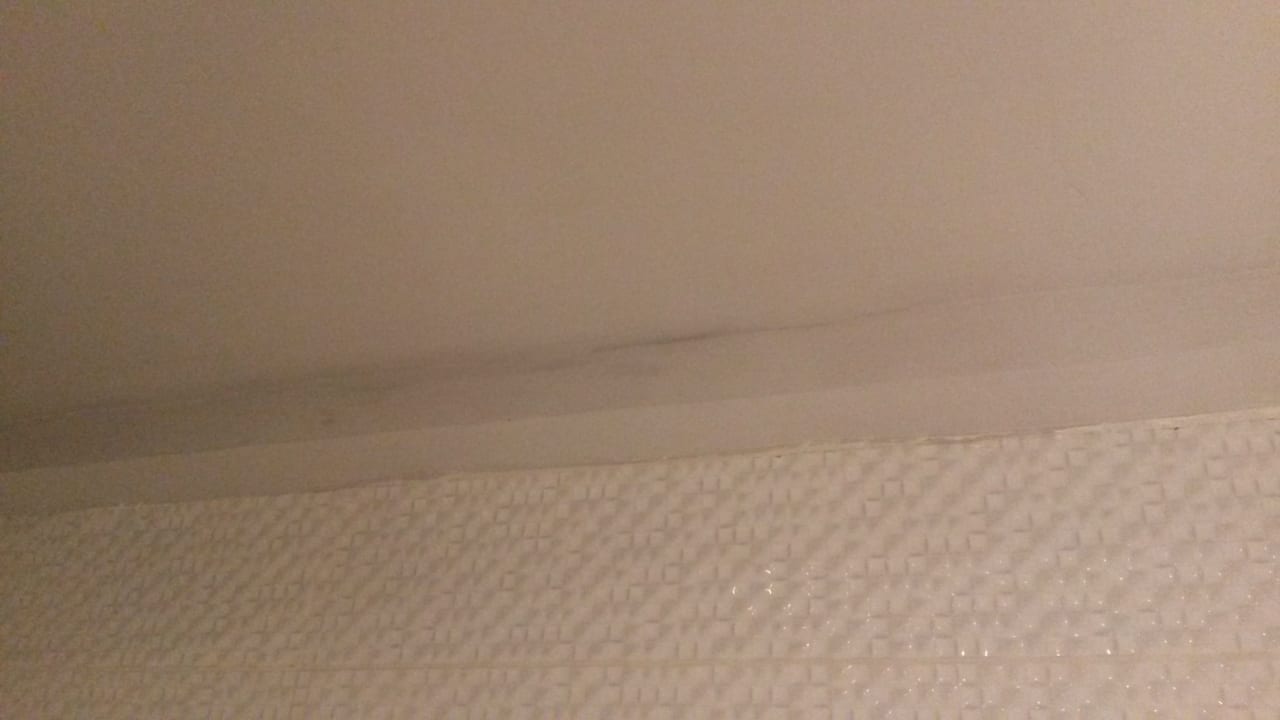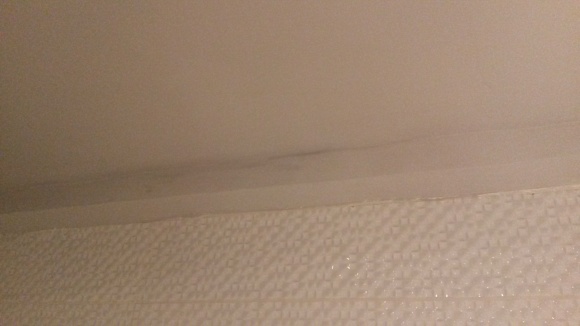 Badezimmer. Schiefe Trockenbauwand.