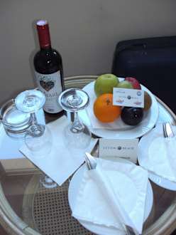 Begrüßungskorb: Wein und Obst